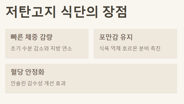 저탄고지 식단은 체중 감량, 혈당 조절, 식욕 감소 등의 효과로 인해 매력적인 선택지일 수 있습니다. 하지만 단점과 부작용도 존재하므로 신중한 접근이 필요합니다.