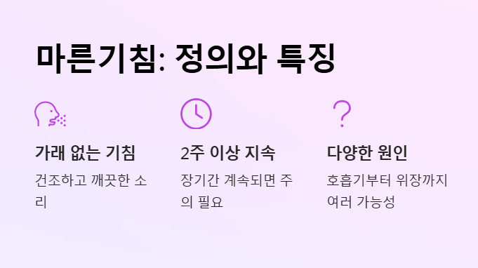 이런 증상이 반복된다면 단순 감기라고 넘기기보다 지속되는 마른기침의 정확한 원인을 먼저 살펴볼 필요가 있어요. 기침은 몸이 보내는 방어 반응이지만, 2주 이상 마른기침이 지속된다면 호흡기나 위장, 알레르기 등 다양한 원인이 숨어 있을 수 있어요. 이 글에서는 마른기침의 대표적인 원인 5가지각 상황에 맞는 해결 방법, 생활 속 관리 팁을 소개해드릴게요.