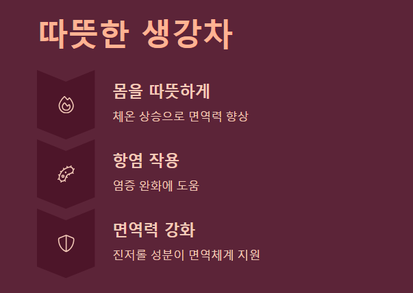 따뜻한 생강차로 몸을 데우고 염증을 가라앉히세요