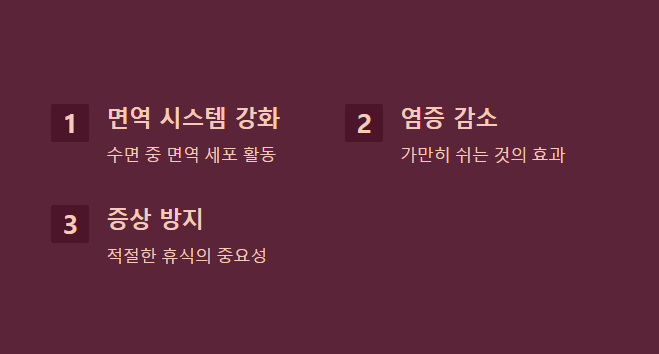 민간요법을 아무리 잘 활용해도 휴식 없이 회복은 어려워요. 몸이 쉬고 있어야 면역 시스템이 제대로 작동하고, 바이러스를 이길 힘을 만들 수 있거든요. 밤에 푹 자는 것만으로도 면역 세포 활동이 활발해지고, 염증 반응이 진정돼요.