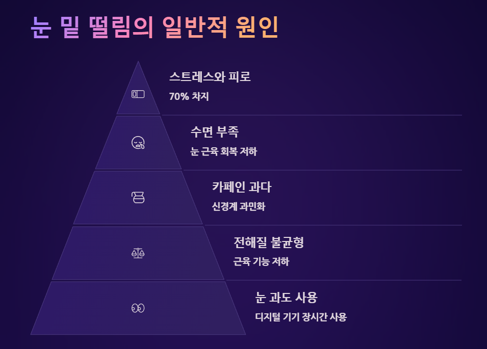 눈 밑 떨림의 가장 흔한 원인은 다음과 같은 일상적 피로 요인입니다.
