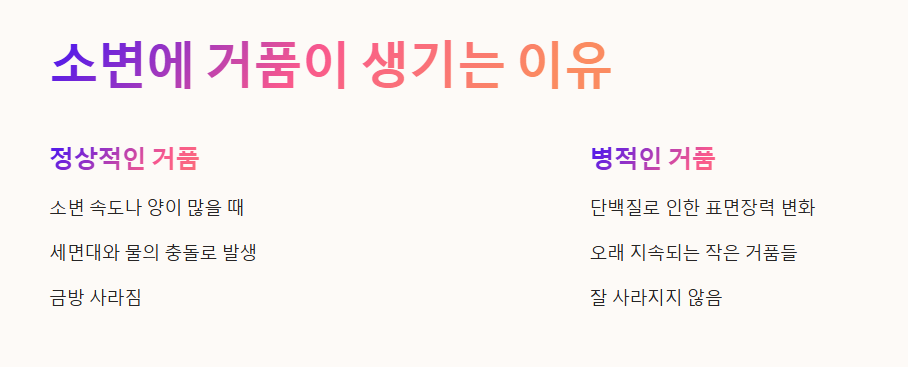 • 수분 섭취가 부족할 때 소변 농도가 짙어지면서 거품이 발생하기도 합니다.