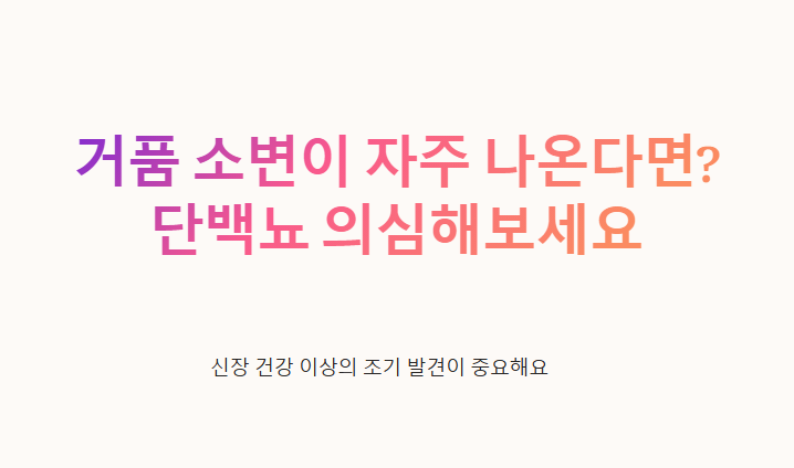 단백뇨 자체는 뚜렷한 자각 증상이 없는 경우가 많습니다. 하지만 다음과 같은 변화가 동반된다면 신장 기능 이상을 의심할 수 있습니다.
