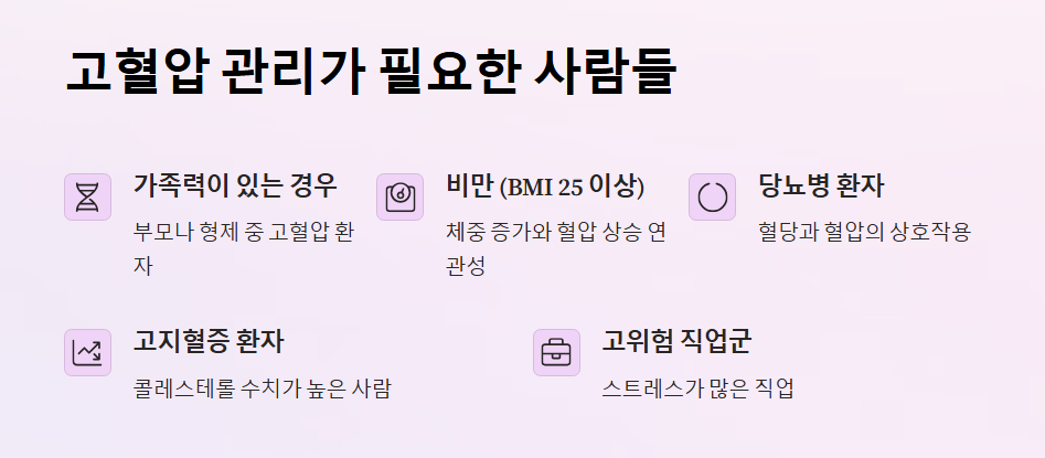 이런 경우 혈압이 갑자기 높아지지 않더라도 생활습관 개선과 정기 검진이 반드시 필요합니다.