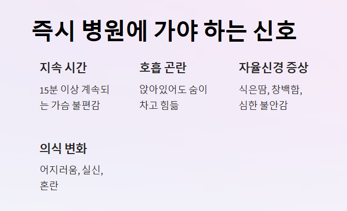 다음과 같은 증상이 5분 이상 지속되거나 반복된다면, 즉시 응급실로 가야 합니다.