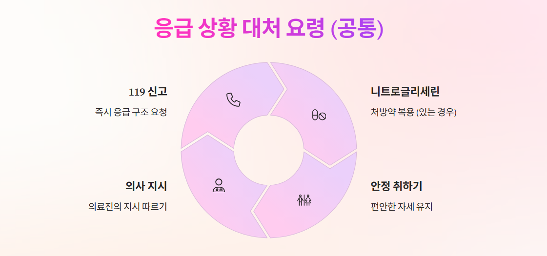 휴식이나 니트로글리세린으로 빠르게 호전