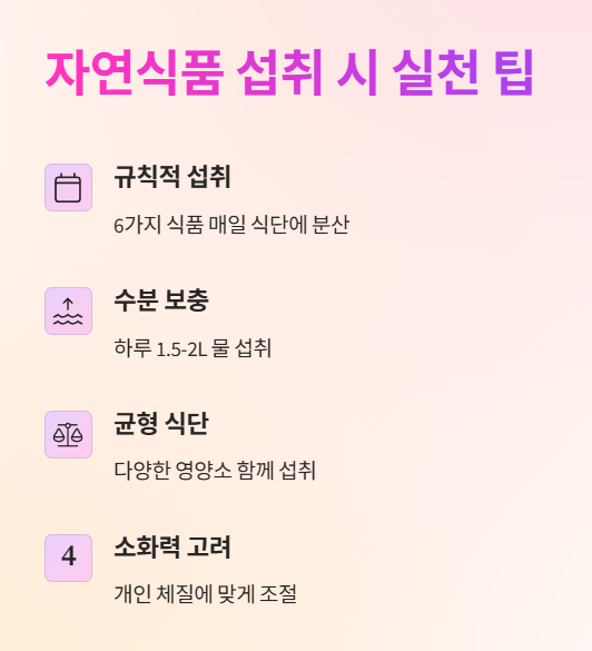 이 식품들은 특별한 조리 없이도 바로 섭취가 가능하며, 다른 음식과 쉽게 조합 가능하다는 점에서도 실천하기 좋습니다.