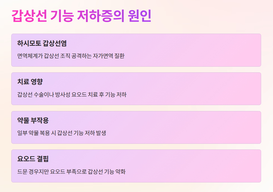 • 대표적인 원인은 자가면역질환(하시모토 갑상선염)