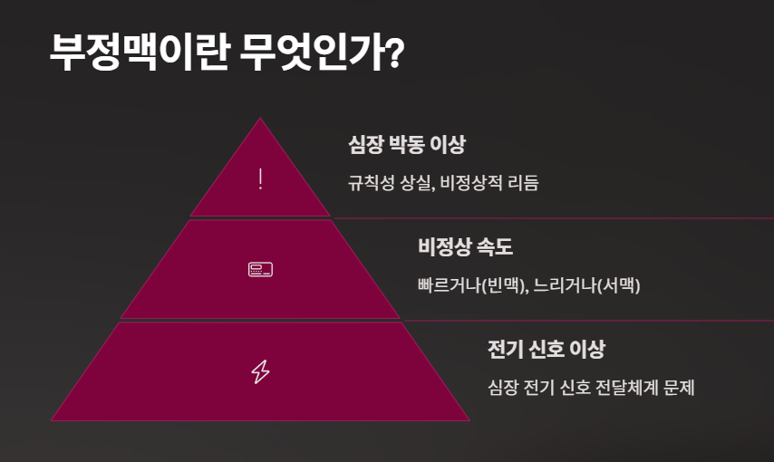 부정맥은 말 그대로 '리듬이 어긋난 심장 박동'을 말합니다. 심장이 뛰는 간격이 일정하지 않거나, 너무 빠르거나 느려지는 증상이 반복되며, 이는 심장 안 전기 신호의 이상으로 인해 발생합니다.