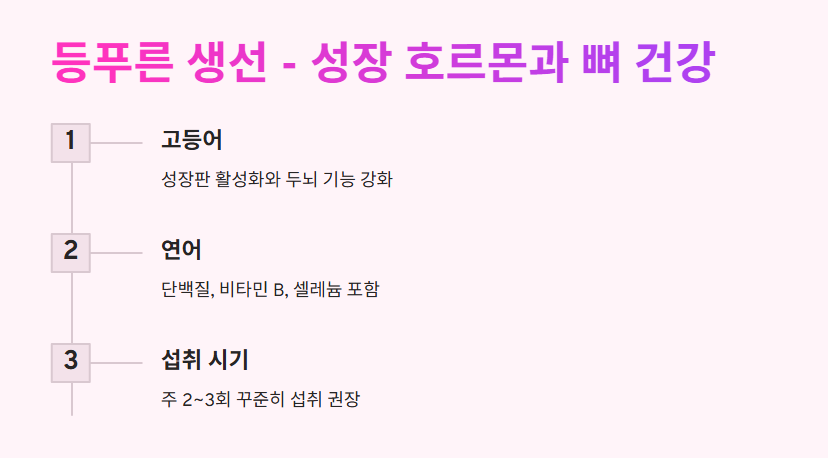 • 고등어: 성장판 활성화와 두뇌 기능 강화에 효과적