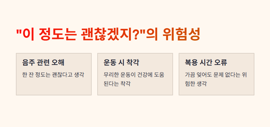 • 해결 방법: 하루 1.5~2리터 수분 섭취, 음주 자제