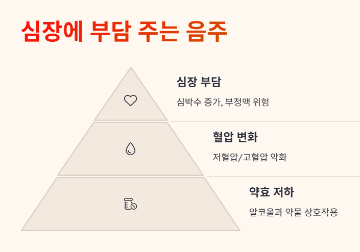 술은 심박수와 혈압을 불안정하게 만들고, 이뇨작용은 체내 수분을 빼앗아 혈액 순환에 부담을 줍니다. 특히 이뇨제를 병용하는 경우엔 더욱 주의가 필요합니다.