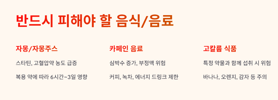 • 카페인 과다: 베타차단제 복용 시 심장 반응 방해 가능