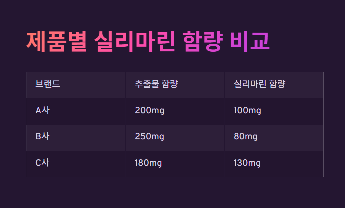• 중요 기준: 실리마린 함량과 복합 성분의 시너지 확인