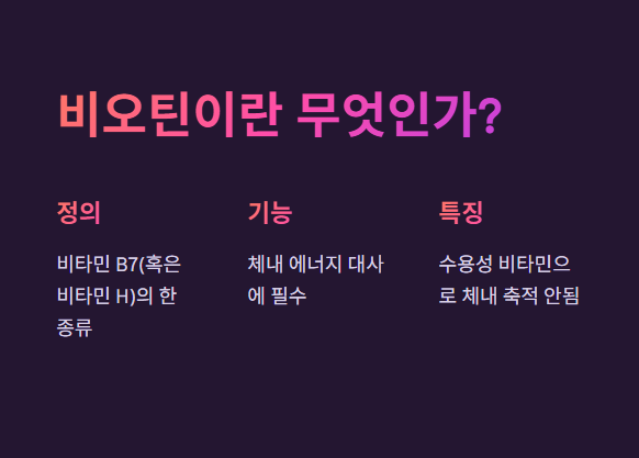 • 비오틴의 기능: 단백질 합성 보조, 모낭 건강 유지
