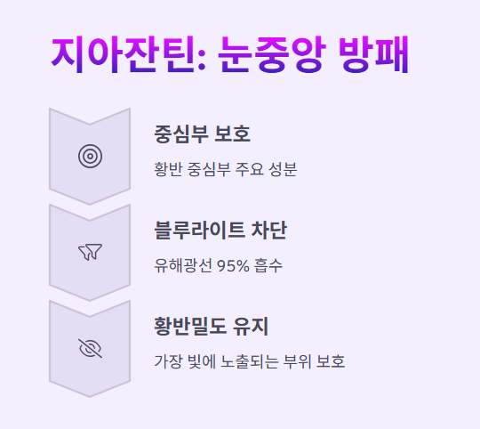 세 성분은 각기 다른 위치에서 눈을 보호합니다. 복합 섭취 시 시너지 효과가 극대화되며, 체내 흡수율도 고려해야 합니다.