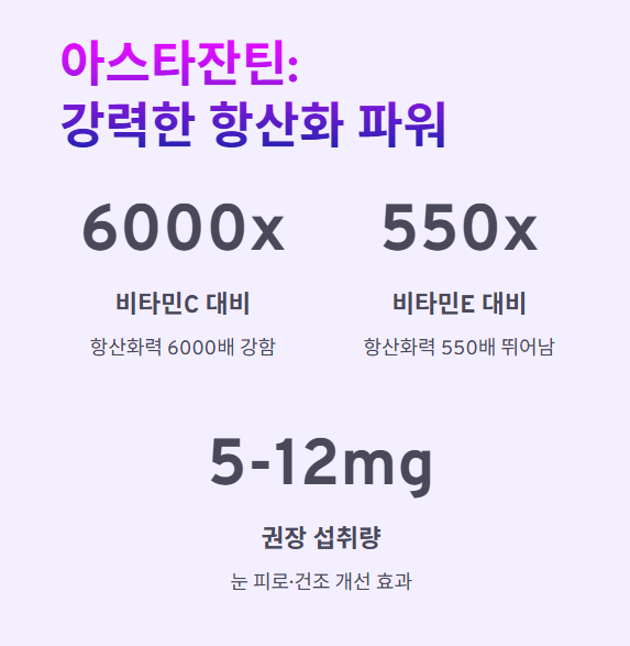 아스타잔틴은 해조류에서 유래된 강력한 항산화 물질로, 특히 눈 근육의 피로 해소에 탁월한 성분입니다. 루테인·지아잔틴과는 다른 방식으로 눈에 작용합니다.