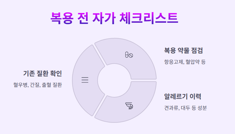 • 복합제 선택 시 주의: 비타민E·아연 등과의 조합 권장