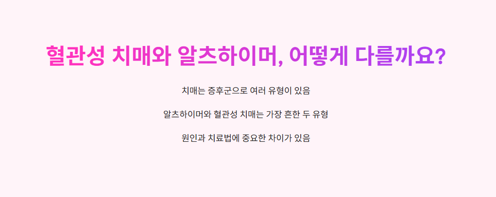 혈관성 치매는 혈관질환과 같은 방식으로 관리, 알츠하이머는 인지기능 보호 중심의 관리가 필요합니다.