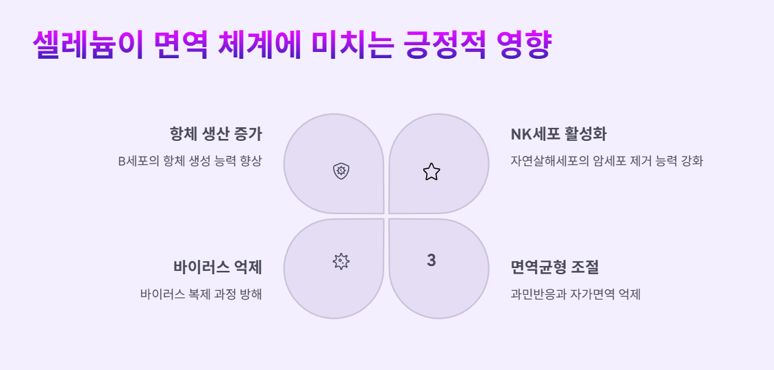 특히 감염에 취약한 환경이나 시기일수록 셀레늄의 면역 조절 능력이 큰 역할을 합니다.