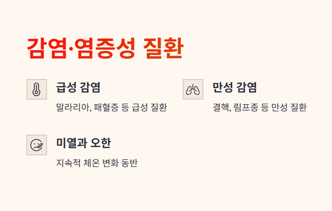 과도한 발한과 체온 이상 – 감염이나 패혈증 가능성