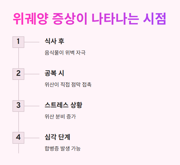 증상이 심해질수록 위장의 손상이 진행되고, 심각한 합병증으로 이어질 수 있습니다.