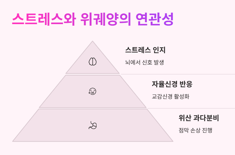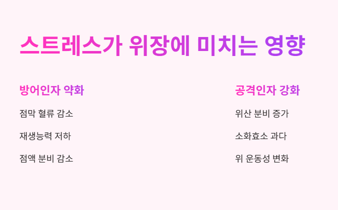 정신적 스트레스는 위장의 혈류를 감소시키고, 위산 분비를 증가시켜 점막을 약화시키는 역할을 합니다.