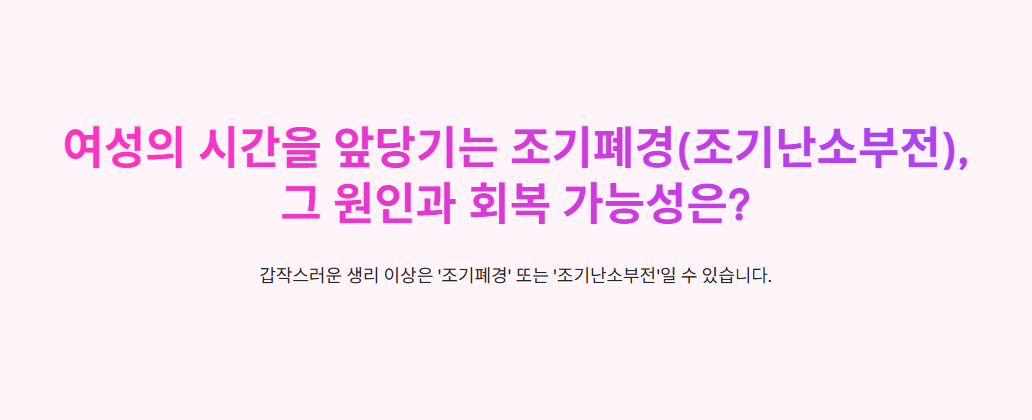 40세 이전에 생리가 멈추고 난소 기능이 저하된다면 누구나 당황할 수밖에 없습니다. 조기폐경 또는 조기난소부전은 생식 기능뿐 아니라 여성 건강 전반에 영향을 주는 만큼 조기 인식과 대처가 필요합니다. 이번 글에서는 조기난소부전의 원인과 증상, 회복 가능성까지 꼼꼼히 살펴보겠습니다.