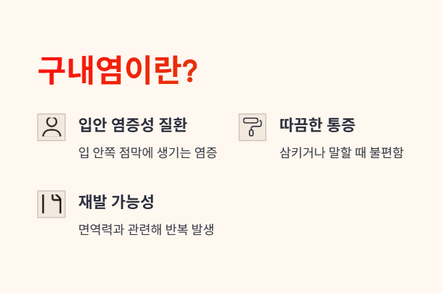 입안이 따끔거리거나 작게 헌 자국이 생기면, 많은 분들이 구내염을 의심하게 됩니다. 일시적인 증상이라고 넘기기 쉽지만, 반복되는 경우라면 원인 파악과 적절한 치료가 필요합니다. 오늘은 구내염의 주요 원인과 치료법, 그리고 일상 속에서 실천할 수 있는 관리법까지 정리해보겠습니다.