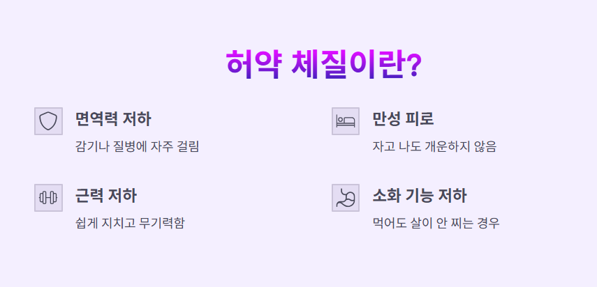 허약 체질은 단순히 마른 체형이 아니라 기초 체력과 면역력이 낮아진 상태를 말합니다.