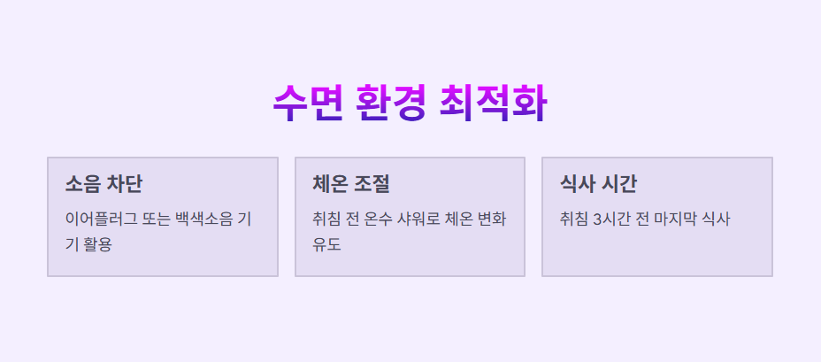 • 소음 차단: 이어플러그 또는 백색소음 기기 활용