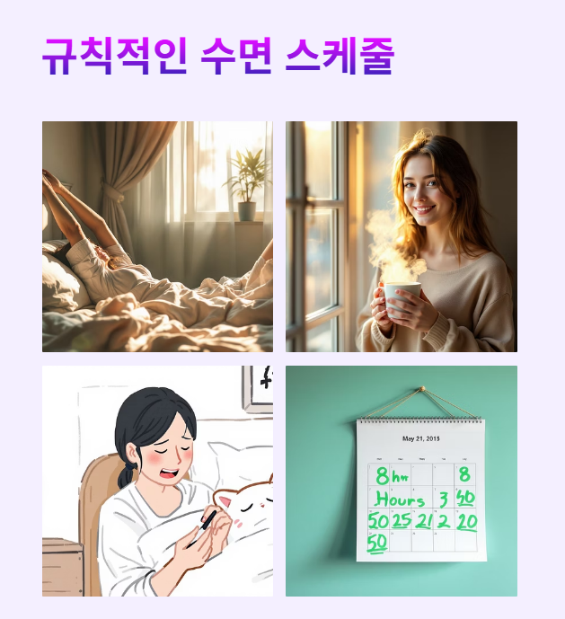 수면 리듬은 생체시계에 따라 움직이므로, 일정한 시간에 자고 일어나는 것이 핵심입니다.