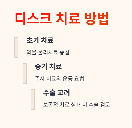 • 디스크 – 초기에는 약물·물리치료 중심