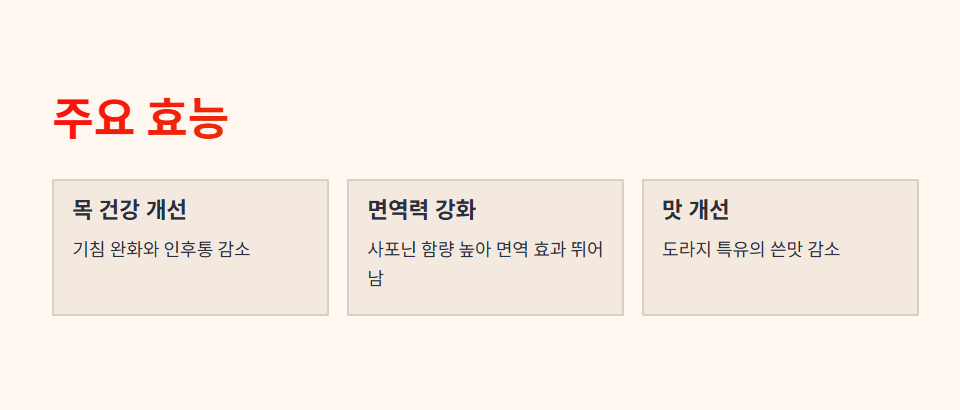 • 도라지 특유의 쓴맛 감소, 먹기 쉬운 점