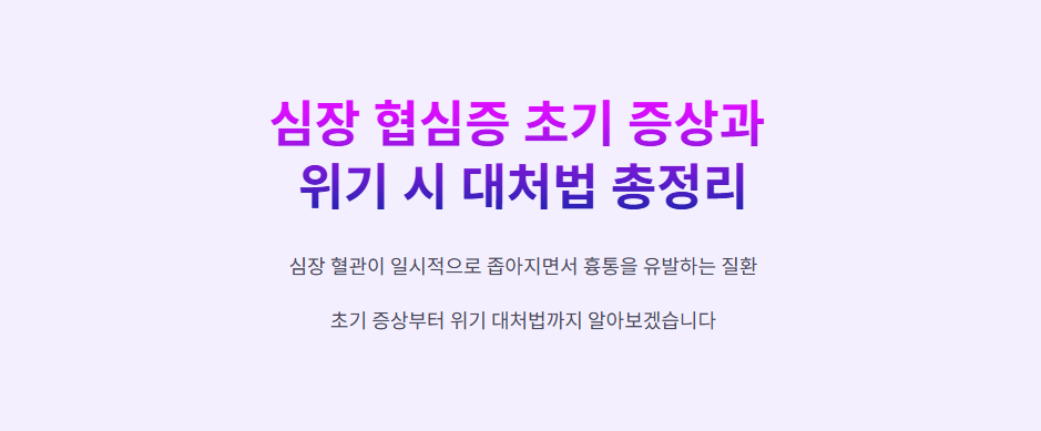 협심증은 심장 혈관이 일시적으로 좁아지면서 흉통을 유발하는 질환입니다. 초기에 가벼운 증상으로 시작되지만 방치하면 심근경색으로 이어질 수 있어 주의가 필요합니다. 오늘은 협심증 초기 증상과 위기 시 대처법을 정리해보겠습니다.