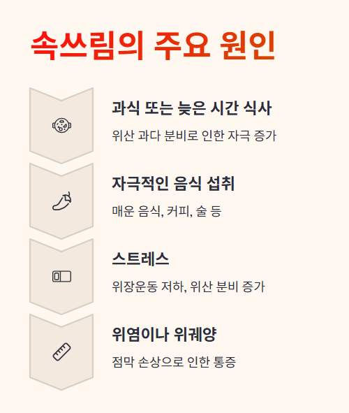 속쓰림은 위산이 식도로 역류하거나, 위점막이 자극을 받아 발생하는 증상입니다. 원인을 정확히 아는 것이 중요합니다.