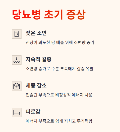 • 잦은 소변: 신장이 과도한 당을 배출하기 위해 소변량이 늘어남
