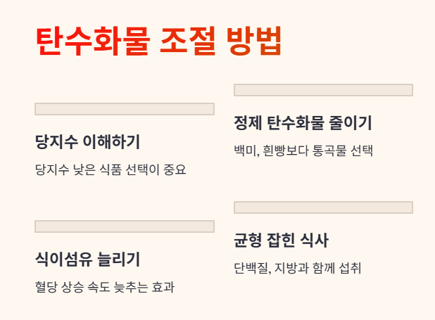 • 탄수화물 조절: 당지수가 낮은 식품 중심으로 섭취