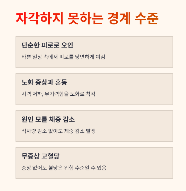 • 단순한 피로로 오인: 바쁜 일상 속에서 피로를 당연하게 여김
