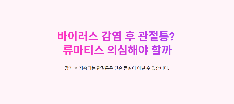 바이러스 감염 이후에도 계속되는 관절통은 단순한 몸살이 아닐 수 있습니다. 특히 통증이 오래가거나 손가락 관절까지 영향을 준다면 류마티스 관절염과 같은 자가면역 질환을 의심해볼 수 있습니다. 이번 글에서는 감염 이후 발생하는 관절통의 원인과 주의해야 할 점을 살펴봅니다.