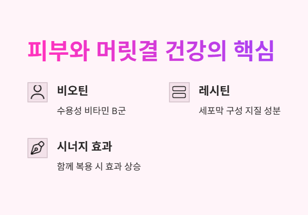 비오틴과 레시틴은 피부와 모발 건강을 위한 대표적인 영양 성분입니다. 하지만 두 가지를 어떤 비율로, 언제 어떻게 복용해야 효과적인지에 대한 정보는 잘 알려져 있지 않죠. 오늘은 비오틴과 레시틴 각각의 효능과 함께, 피부와 머릿결 변화에 어떤 영향을 주는지 정리해드립니다.