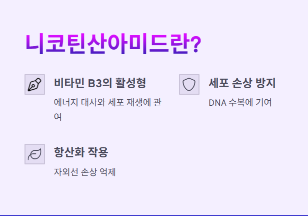 니코틴산아미드는 비타민 B3의 활성형으로, 인체 내 에너지 대사와 세포 재생에 깊이 관여합니다.