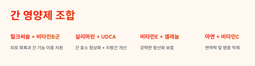 • 밀크씨슬 + 비타민B군: 피로 회복과 간 기능 이중 지원