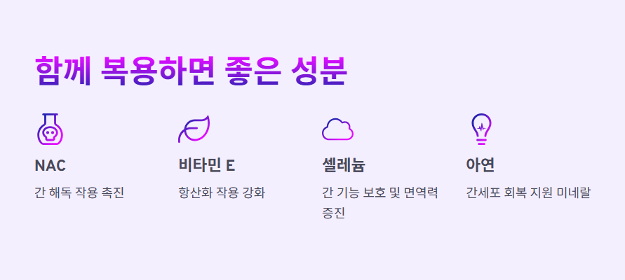 일부 제품은 다른 간 보조 성분(비타민E, NAC 등)과 함께 복합 처방되어 있으니 성분표를 꼼꼼히 확인하세요.