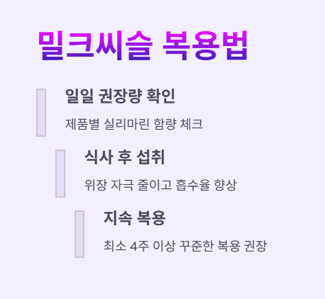 밀크씨슬은 하루 1~2회 섭취하는 것이 일반적이며, 식후 복용을 권장합니다.