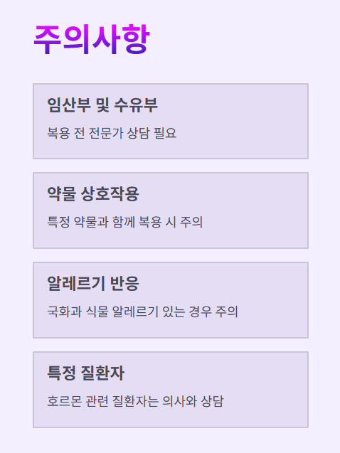 임산부, 수유부, 특정 질환자: 복용 전 전문가 상담 필요